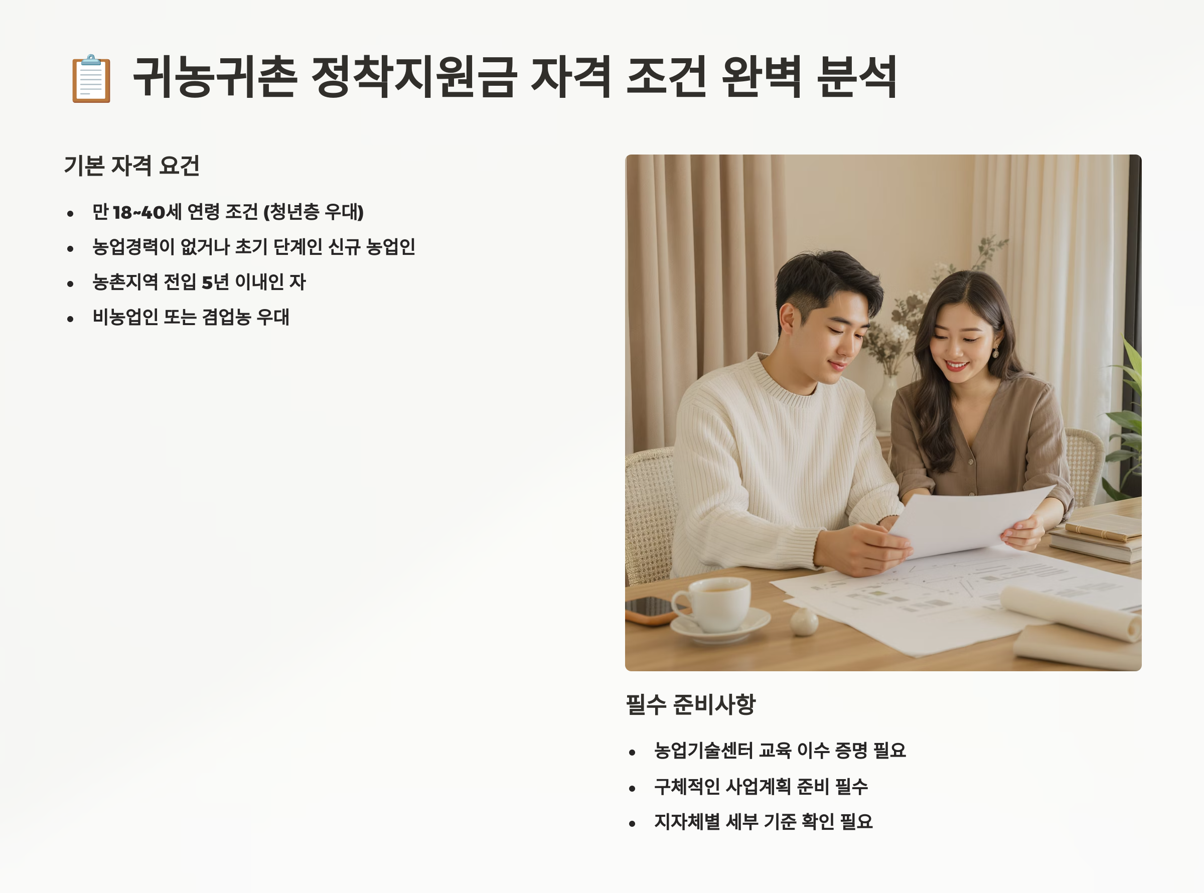 📋 귀농귀촌 정착지원금 자격 조건 완벽 분석