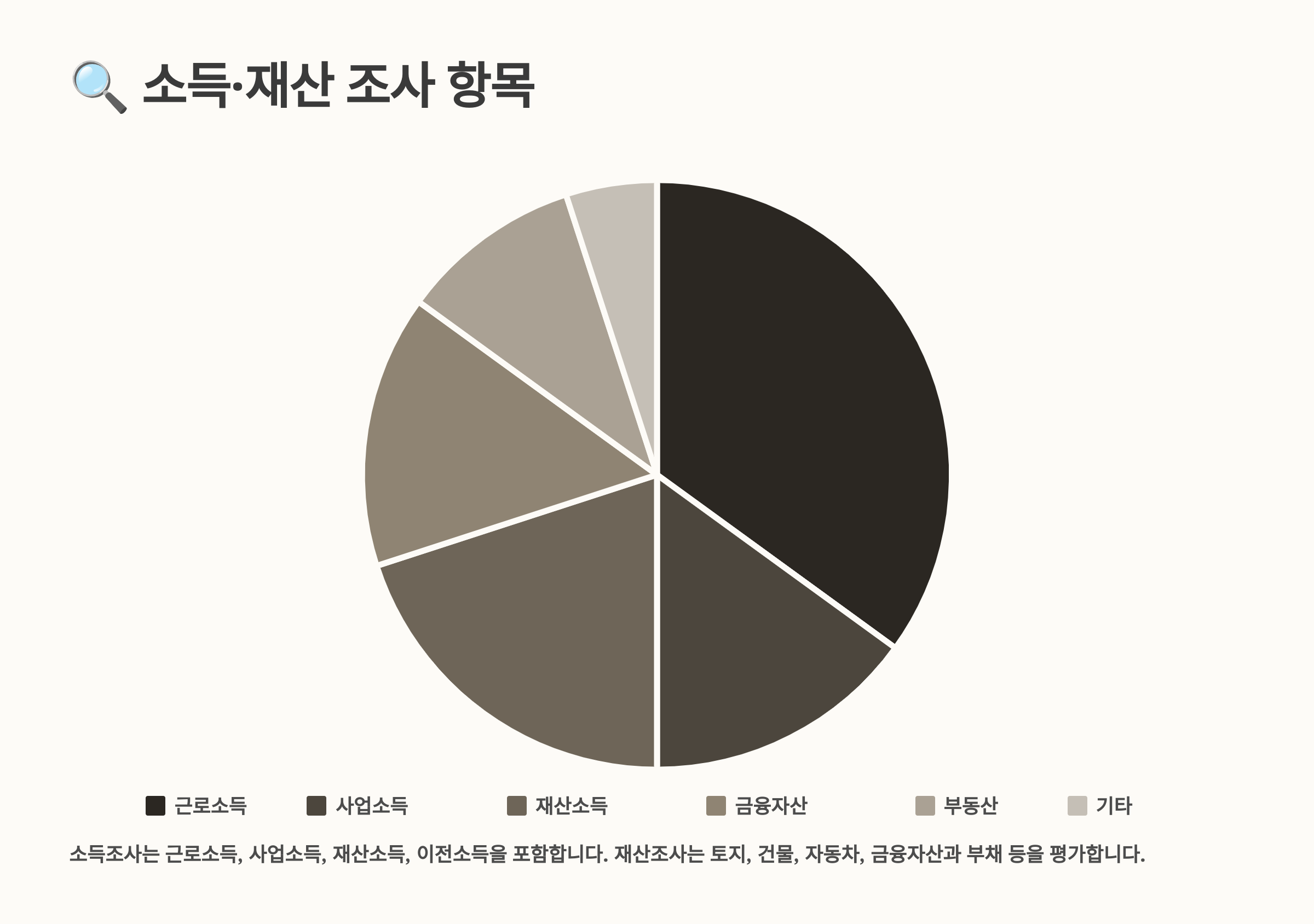 소득 조사는 매우 꼼꼼하게 이루어져요. 근로소득은 국세청 자료로 확인하고, 사업소득은 사업자등록 여부와 매출액을 조사해요. 일용직이나 프리랜서 소득도 빠짐없이 확인한답니다. 심지어 현금으로 받는 소득도 통장 거래내역으로 추정할 수 있어요.