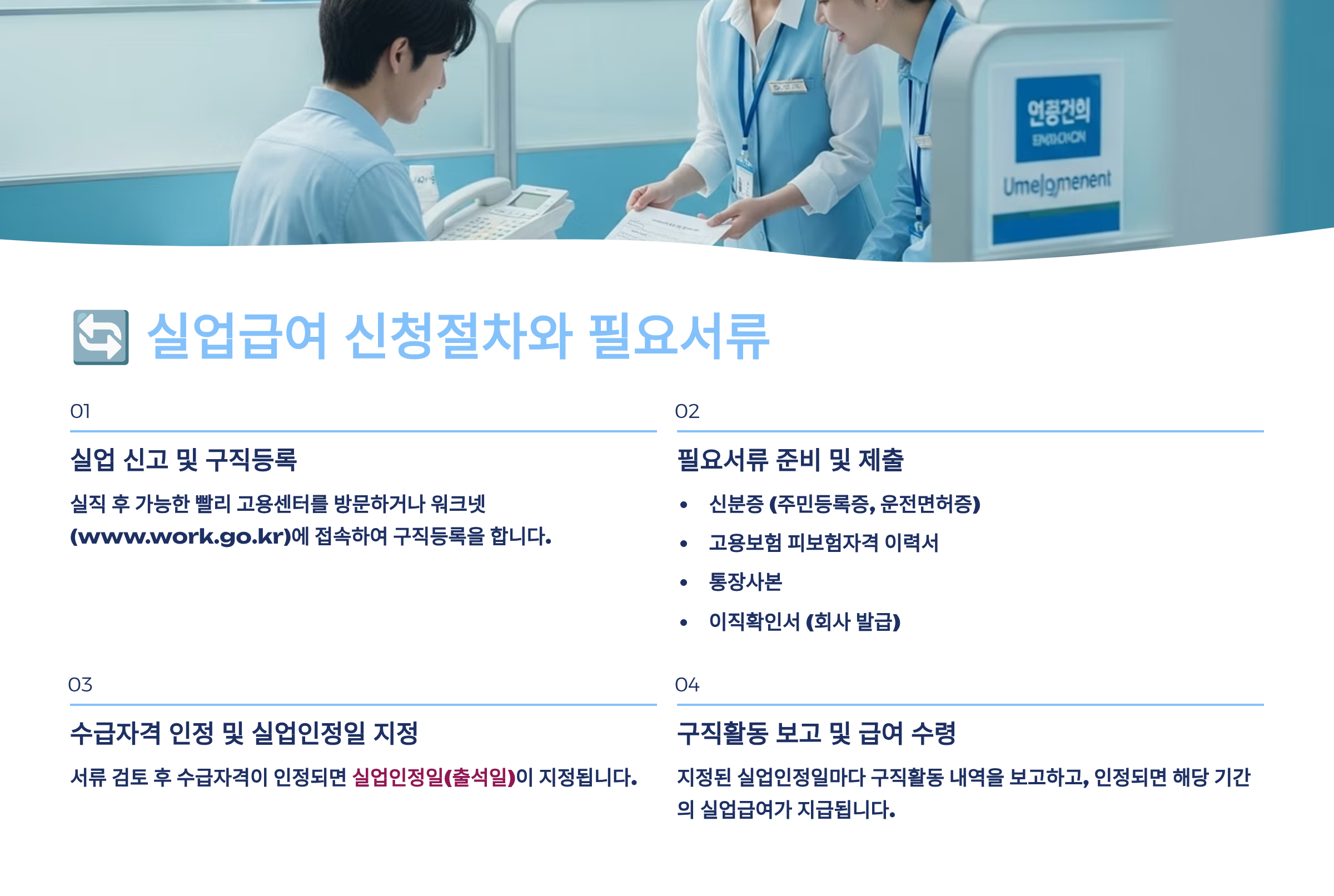 더 이상 망설이지 마시고 오늘부터 실업급여 신청을 준비해보세요