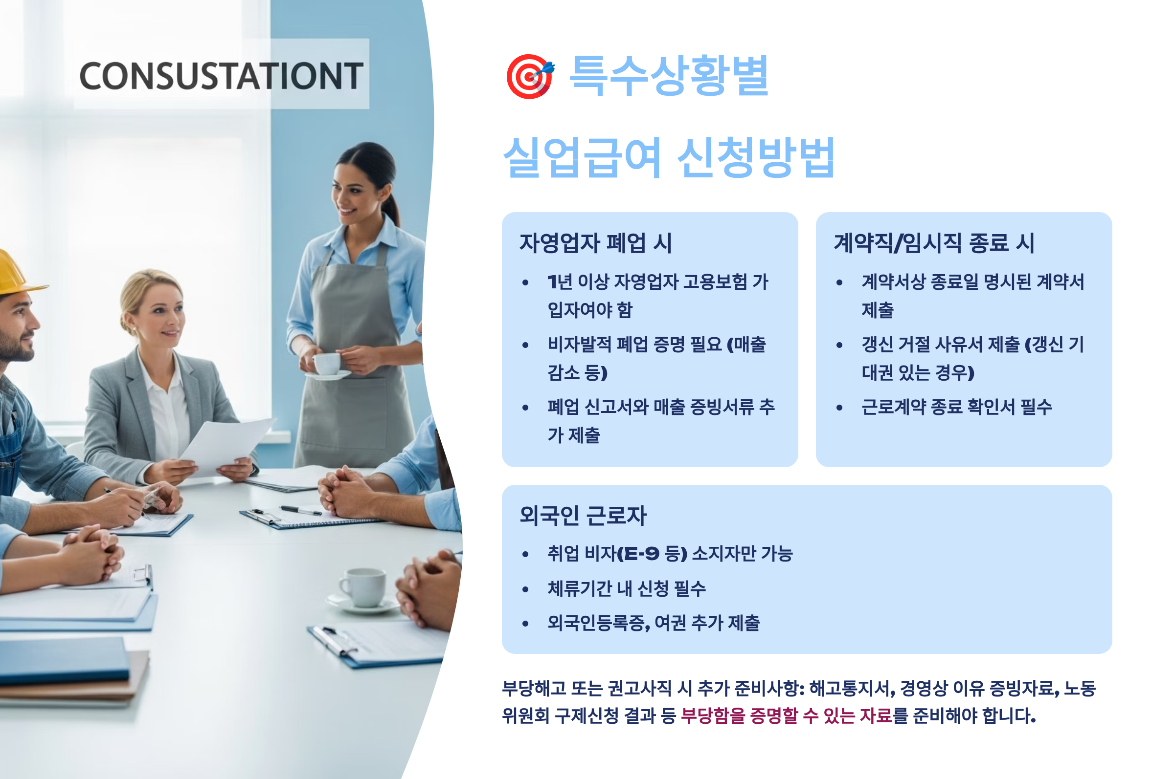 연령별로도 약간의 차이가 있어요. 50세 이상 중장년층의 경우 구직급여 지급 기간이 연장되고, 장애인이나 국가유공자 등 취업 취약계층에 대해서는 더욱 유연한 기준이 적용돼요. 반대로 자영업을 시작하거나 다른 소득이 있는 경우에는 실업급여 수급이 제한될 수 있답니다. 특히 프리랜서나 1인 사업자로 전환하는 경우에는 신중하게 고려해야 하며, 사전에 고용센터와 상담을 받아보는 것이 좋아요. 이런 다양한 조건들을 종합적으로 검토해서 자신이 수급 자격에 해당하는지 정확히 파악하는 것이 중요해요.