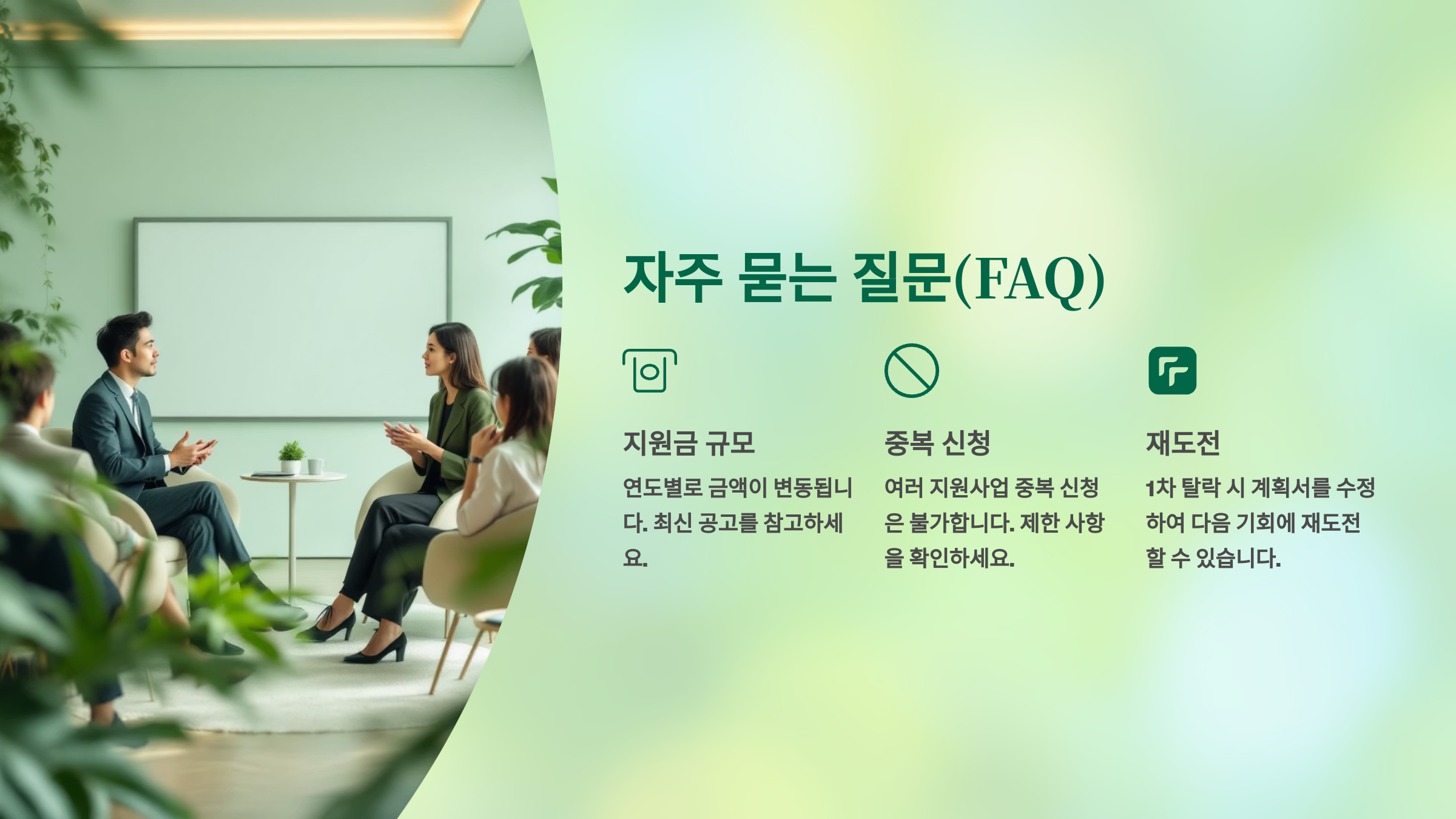 한 번에 선정되지 않더라도 포기하지 마세요. 많은 성공한 창업자들이 여러 번의 도전 끝에 기회를 잡았어요. 실패한 경험도 소중한 자산이 될 수 있고, 그 과정에서 사업 아이디어와 계획이 더욱 발전할 수 있어요. 창업은 마라톤과 같아서 꾸준한 노력과 인내가 필요해요.