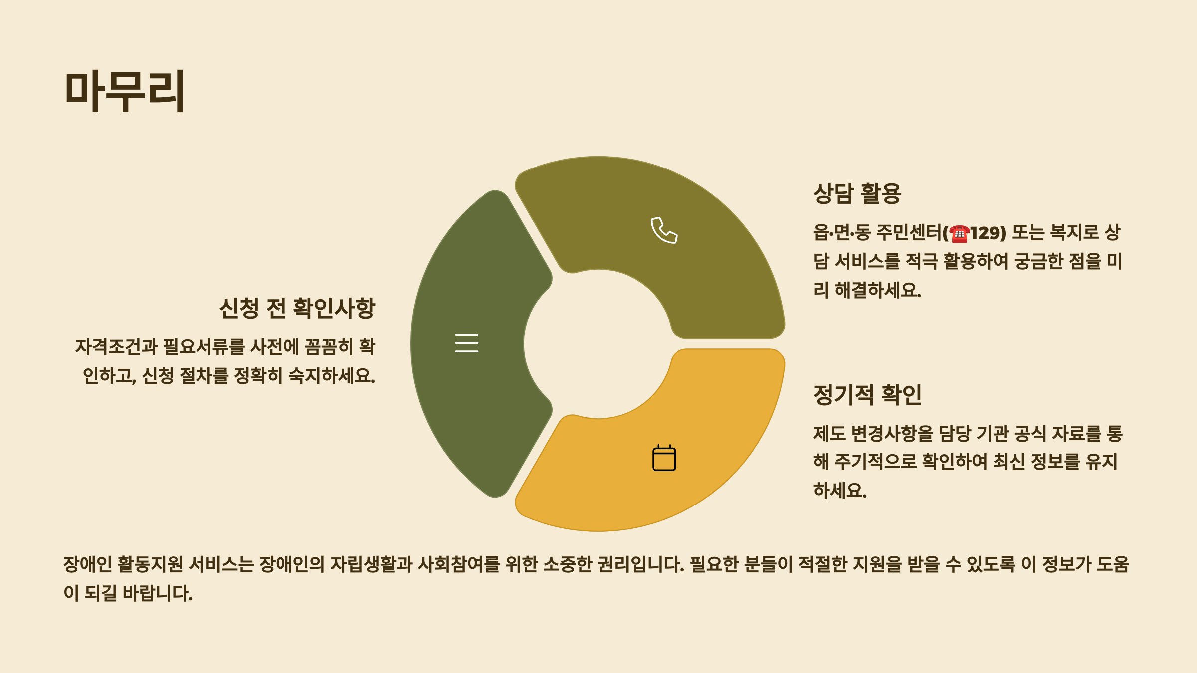 지금까지 2025년 장애인 활동지원금 신청 방법에 대해 자세히 알아봤어요. 활동지원 서비스는 장애인의 자립생활을 실현하는 가장 중요한 복지제도 중 하나로, 일상생활부터 사회활동까지 폭넓은 지원을 제공하고 있답니다. 특히 2025년에는 지원 대상과 급여량이 확대되고, 신청 절차도 더욱 간편해져서 더 많은 장애인들이 혜택을 받을 수 있게 되었어요. 만 6세 이상의 등록장애인이라면 소득 수준에 관계없이 누구나 신청할 수 있으니, 망설이지 말고 도전해보세요.