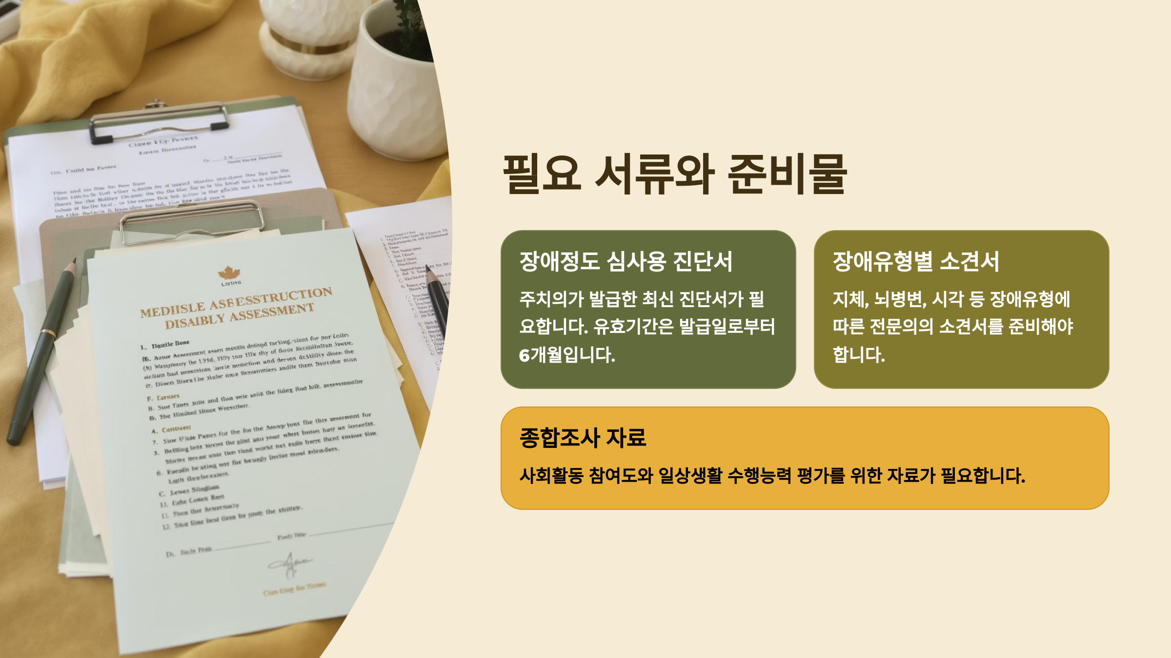 서류를 준비할 때 주의할 점이 있어요. 모든 서류는 최근 1개월 이내 발급된 것이어야 하고, 복사본보다는 원본을 준비하는 게 좋아요. 특히 의료 관련 서류는 반드시 의사 직인이 찍혀 있어야 한답니다. 서류가 미비하면 신청이 반려될 수 있으니 꼼꼼히 확인하세요!