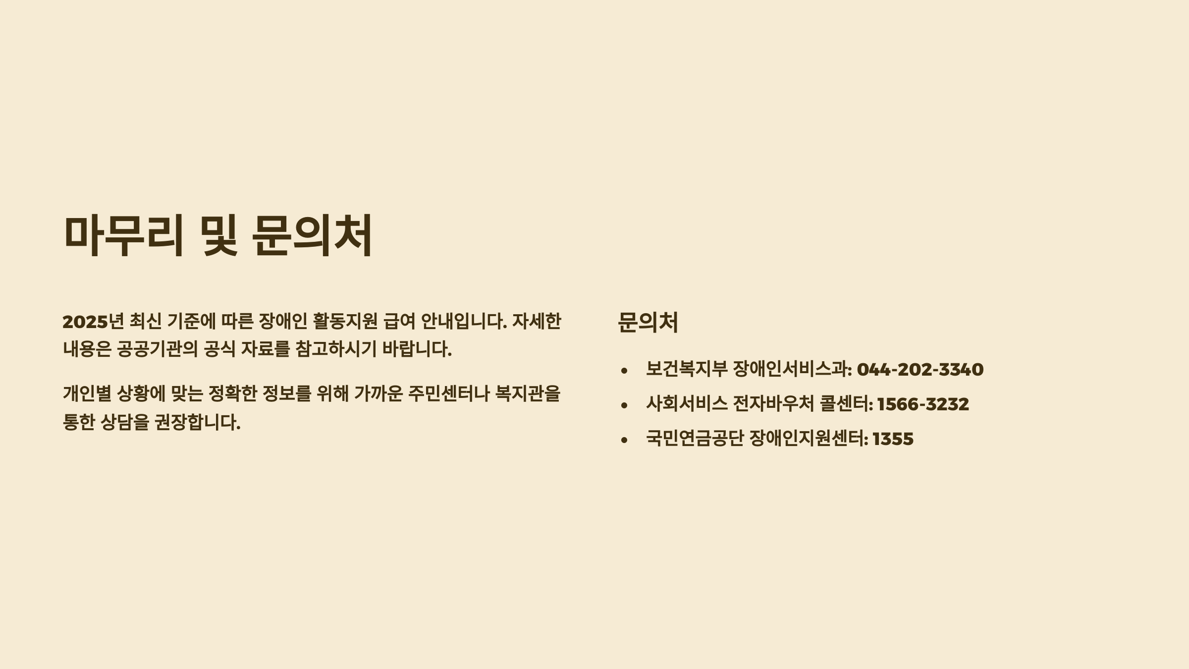 지금까지 2025년 장애인 활동지원 급여의 신청 자격과 절차에 대해 자세히 알아봤어요. 활동지원 서비스는 장애인의 자립생활을 위한 정말 중요한 제도랍니다. 특히 2025년에는 지원 대상과 급여량이 확대되고, 서비스 품질도 향상되어서 더 많은 분들이 혜택을 받을 수 있게 되었어요!