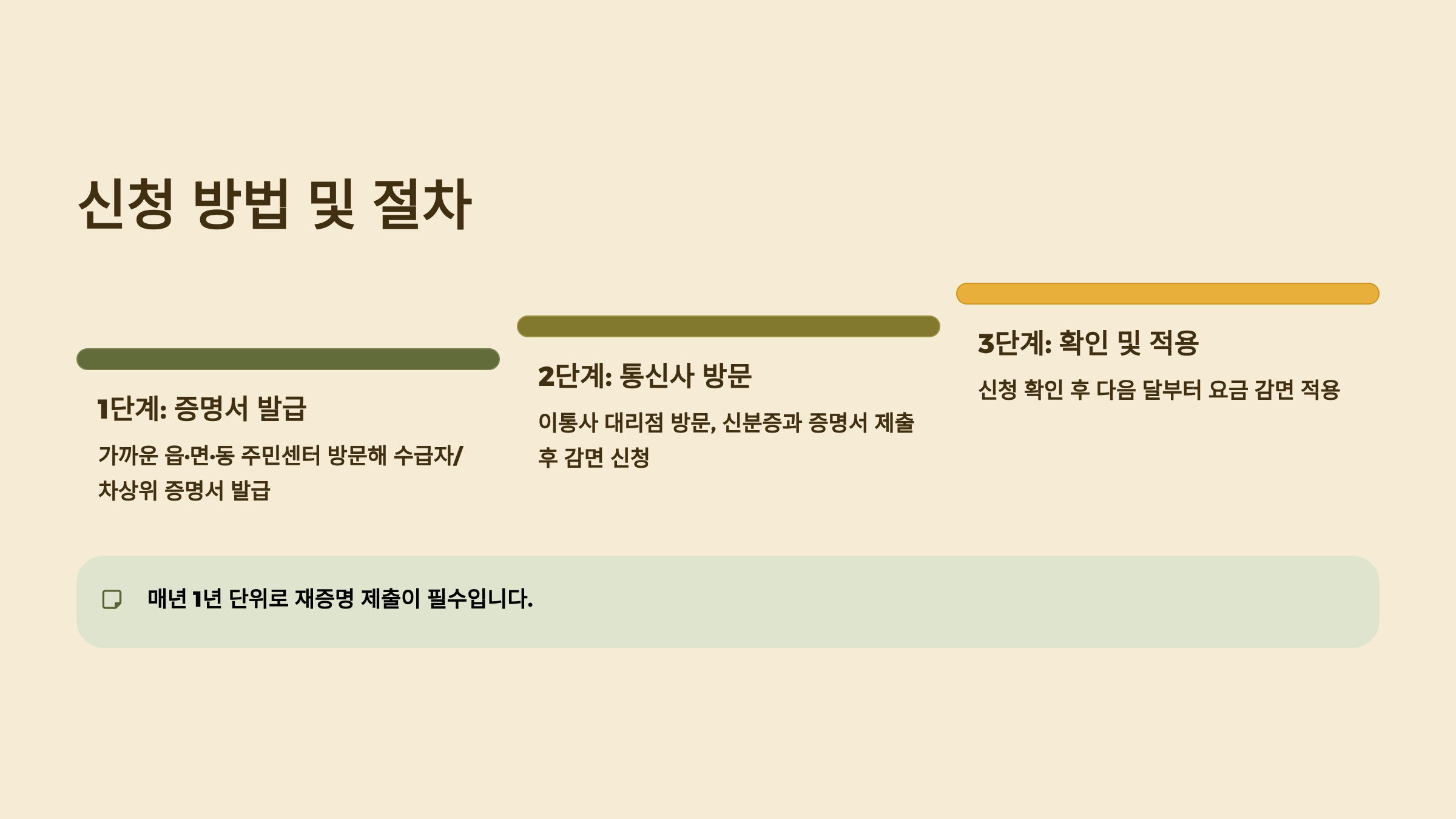 | 주민센터 | 직원 도움, 서류 확인 편리 | 방문 필요, 대기 시간 | 어르신, 장애인 |