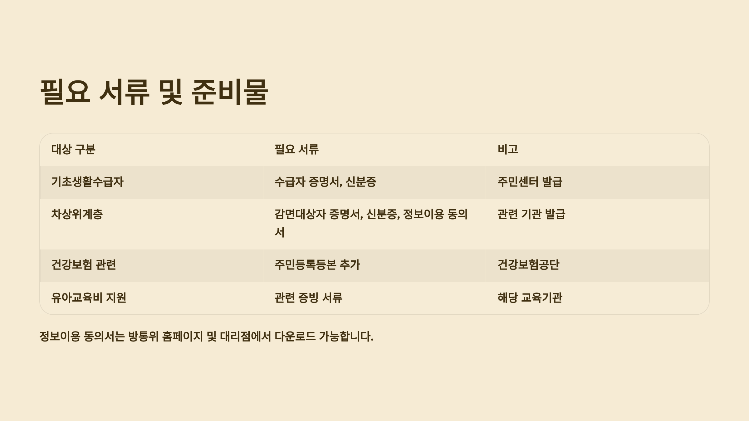 📑 대상자별 필요 서류 체크리스트