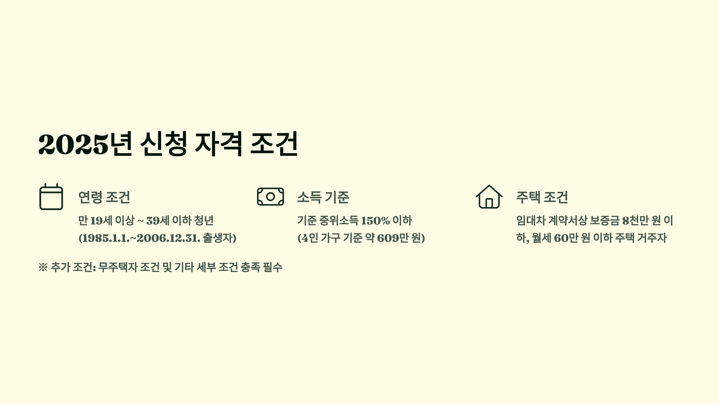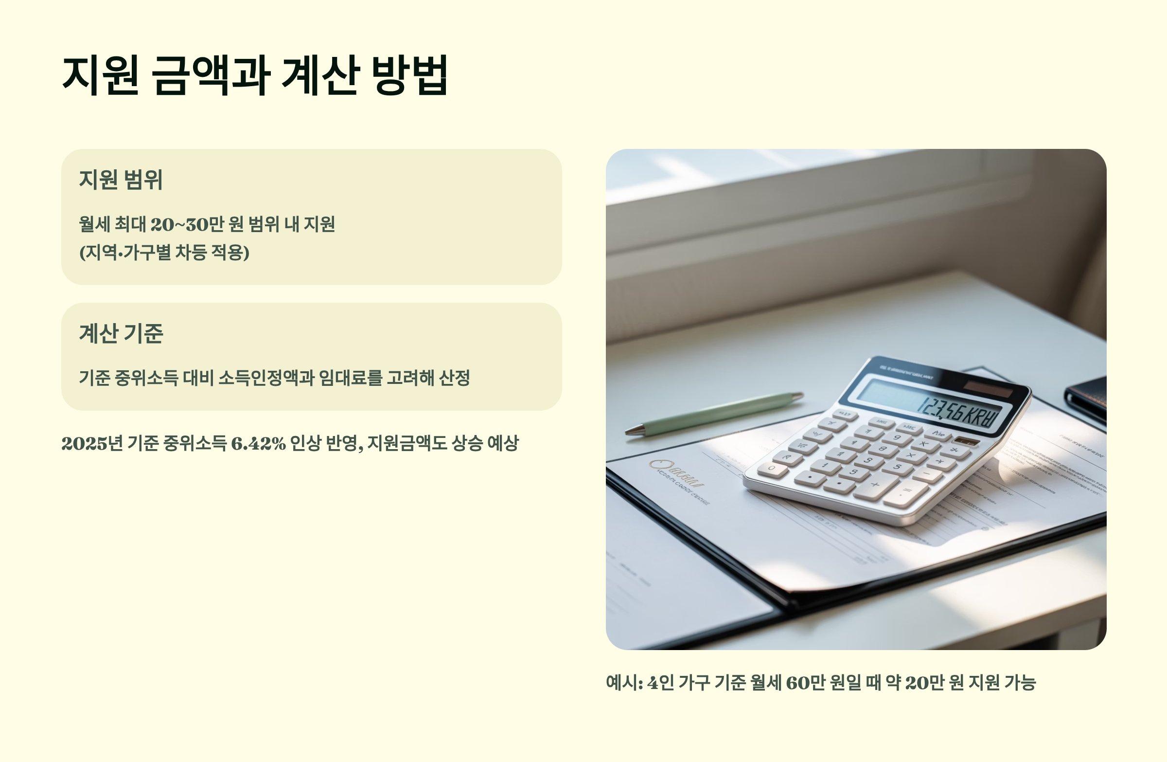 2025년부터는 지원 대상이 기준 중위소득 60%까지 확대되었어요. 이전에는 50%였는데 10%포인트나 상향 조정된 거죠. 1인 가구 기준으로 월 소득 133만원 이하라면 신청 가능해요. 또한 보증금 1억원 이하, 월세 60만원 이하 주택에 거주하는 경우 지원 대상이 된답니다. 지역별로 상한액이 다르니 거주 지역 기준을 꼭 확인해야 해요.