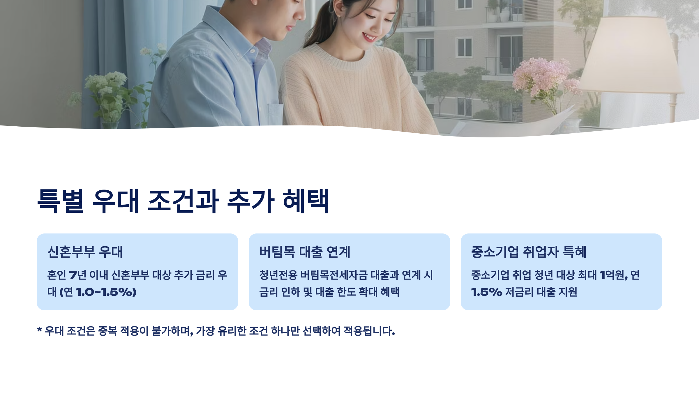 | 신혼부부 | 0.2~0.4%p | 최대 2.5억원 | 소득기준 완화 |