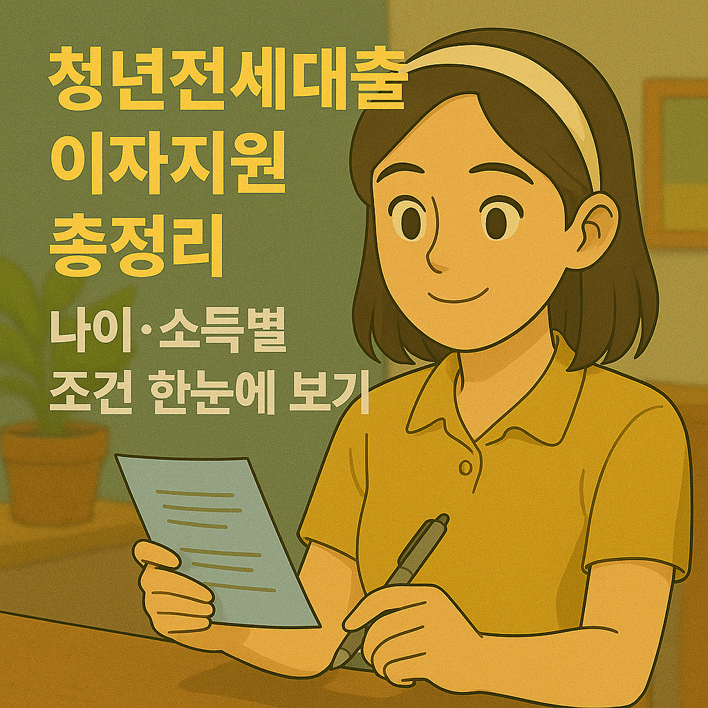 본 콘텐츠는 2025년 1월 기준 청년전세대출 이자지원 제도에 대한 일반적인 정보를 제공하는 것을 목적으로 합니다. 정책 내용은 정부 및 지자체 방침에 따라 변경될 수 있으며, 개인별 상황에 따라 적용 조건이 다를 수 있습니다. 정확한 대출 조건과 자격 요건은 반드시 해당 금융기관이나 공식 홈페이지를 통해 확인하시기 바랍니다. 본 정보를 바탕으로 한 금융 결정에 대한 책임은 본인에게 있음을 알려드립니다.