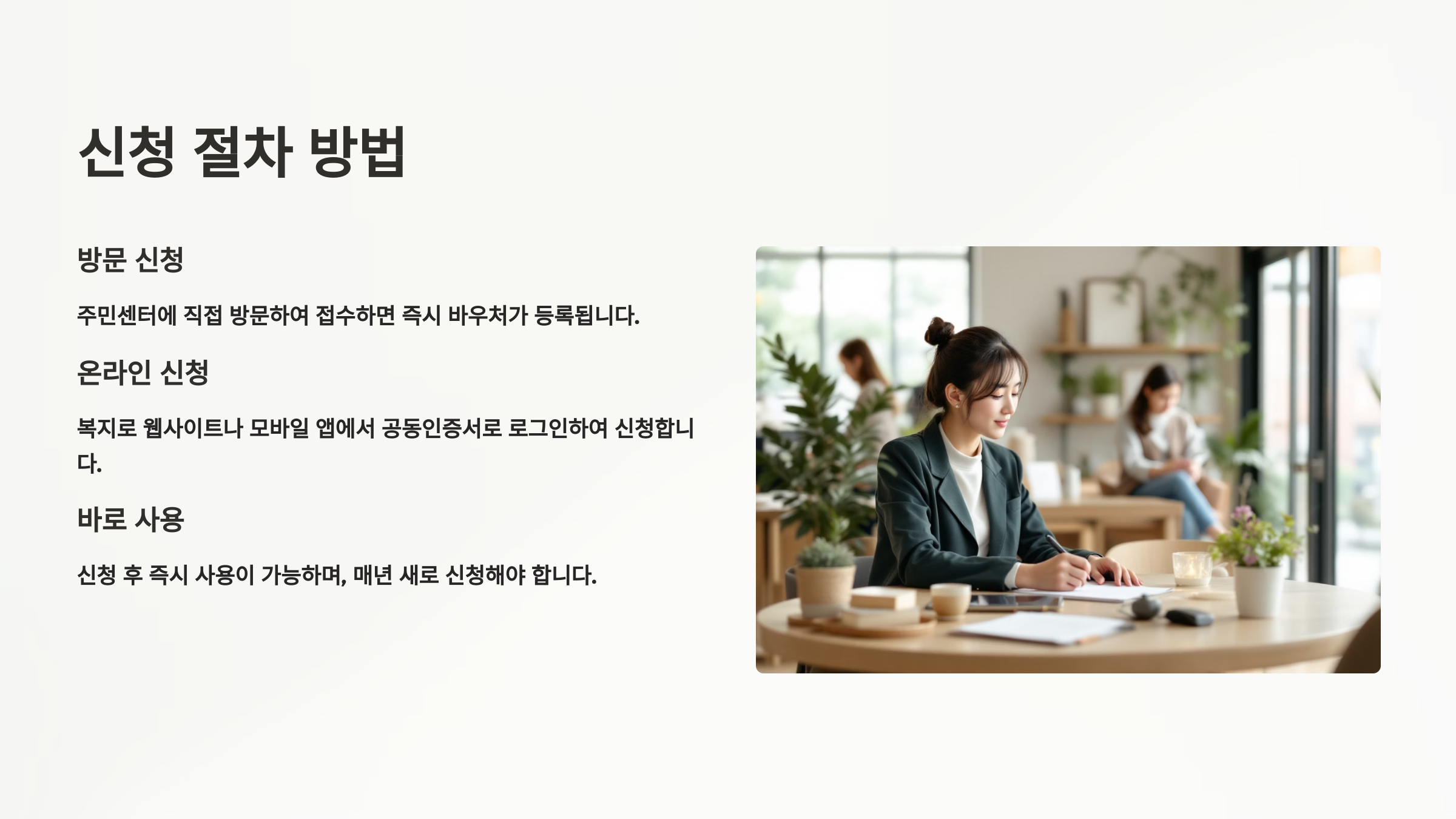 복잡한 방문 없이 집에서 신청하세요!