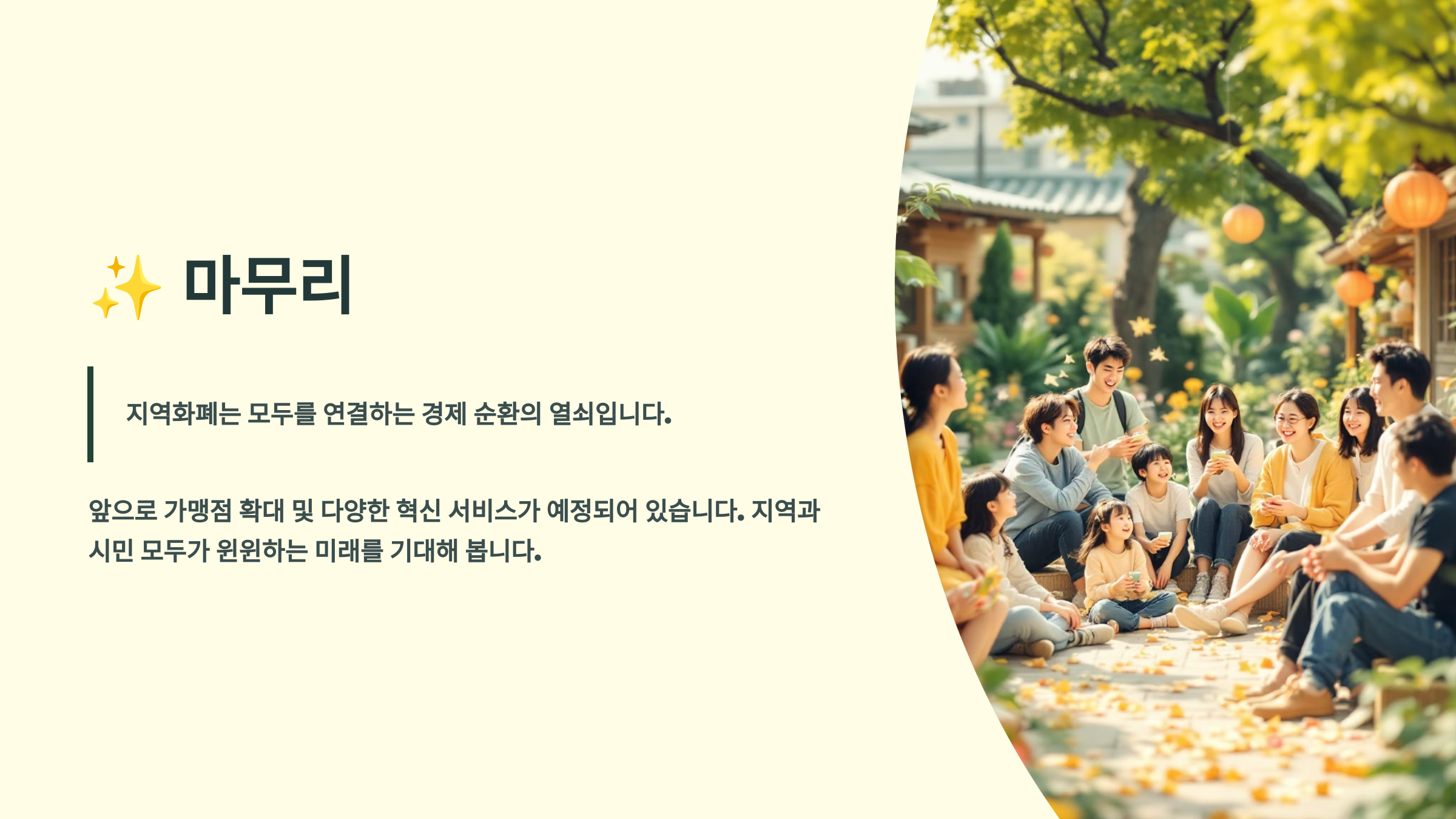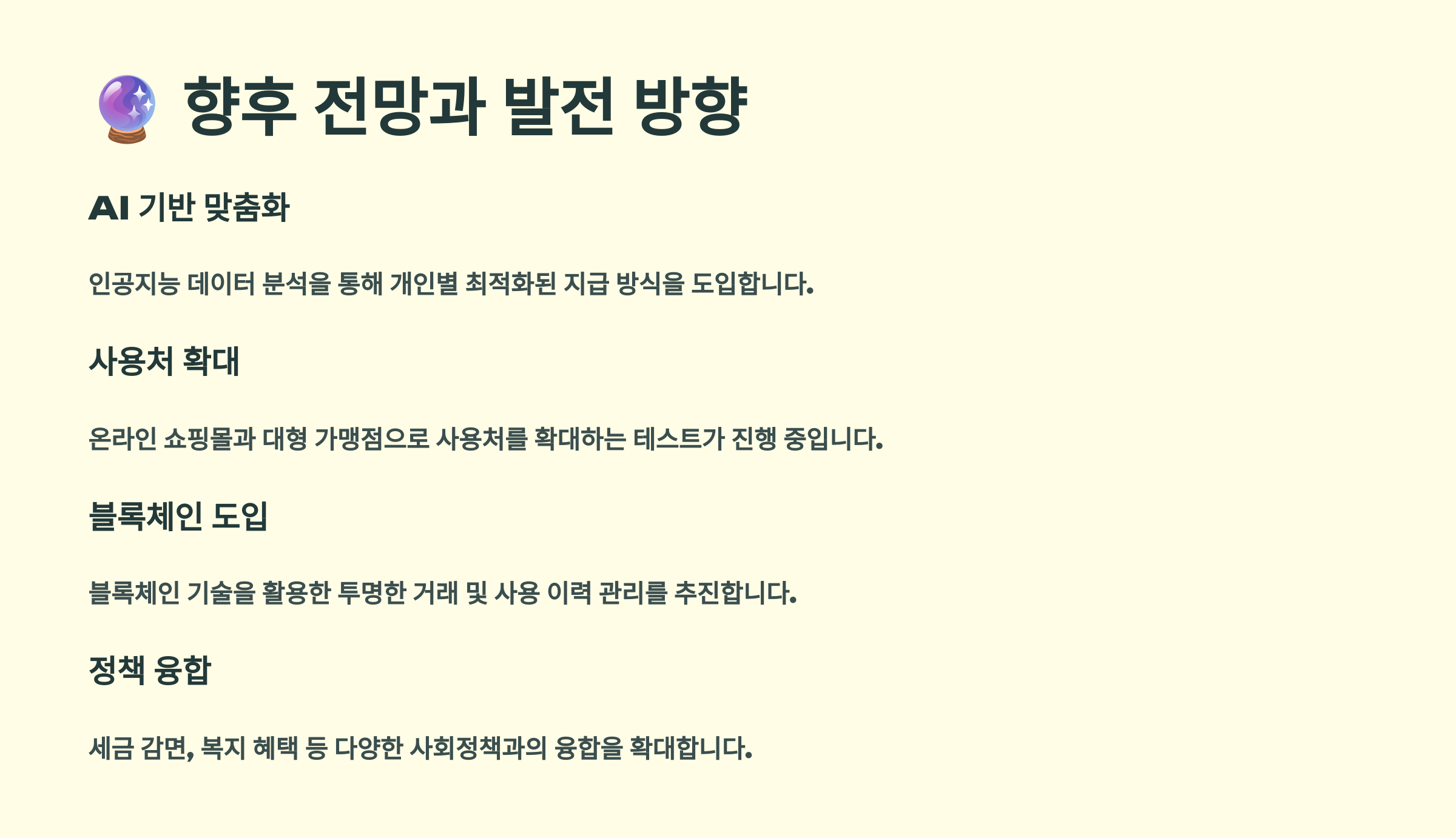 이런 다양한 발전 방향들이 실현되면 지역화폐는 더욱 강력한 지역 발전 도구가 될 것 같아요. 🚀