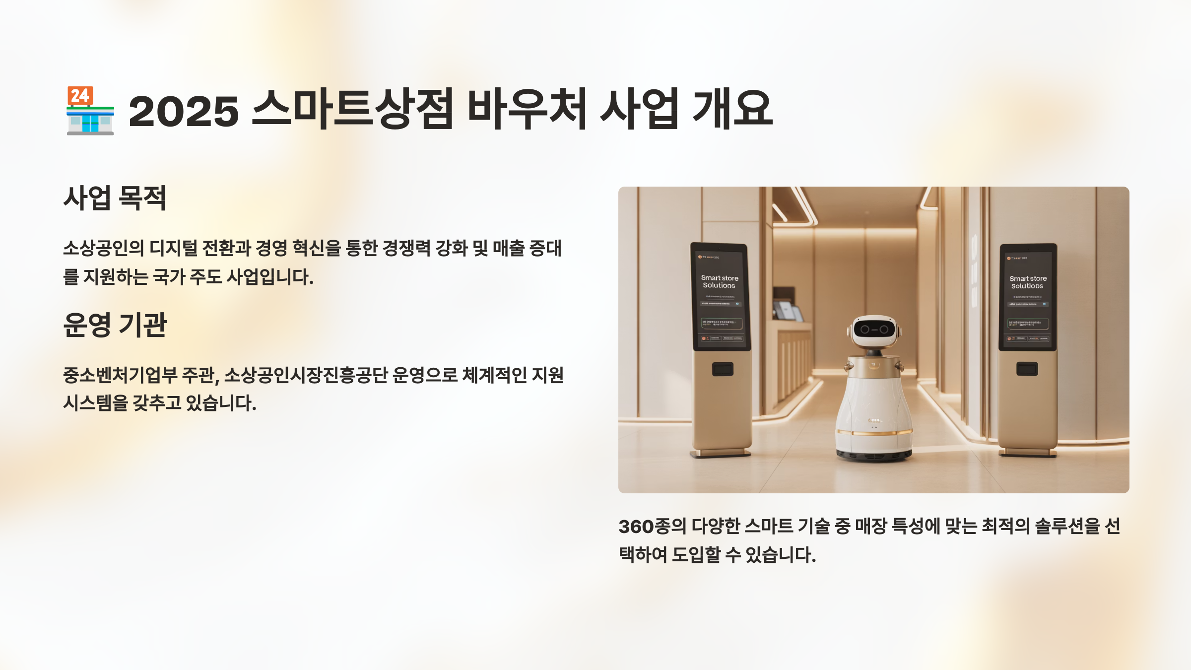 궁금한 점이 있으시면 소상공인 통합콜센터나 중소기업 통합콜센터로 언제든지 문의하세요. 전문 상담사들이 친절하게 안내해드릴 거예요. 2025년 스마트상점 바우처로 여러분의 사업이 한 단계 더 성장하시길 응원합니다! 🚀
