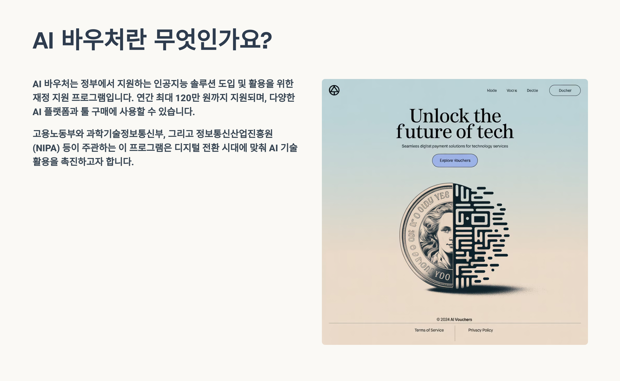 AI 시대에 뒤처지지 않으려면 지금이 바로 시작할 때예요. AI 바우처는 여러분의 기업이 AI 기술을 도입하는 첫걸음이 될 수 있습니다. 두려워하지 말고 도전해보세요! 정부와 전문가들이 여러분의 AI 도입을 적극 지원할 준비가 되어 있답니다. 2025 AI 바우처로 여러분의 기업도 AI 혁신 기업으로 거듭나길 응원합니다. 화이팅! 🎯✨